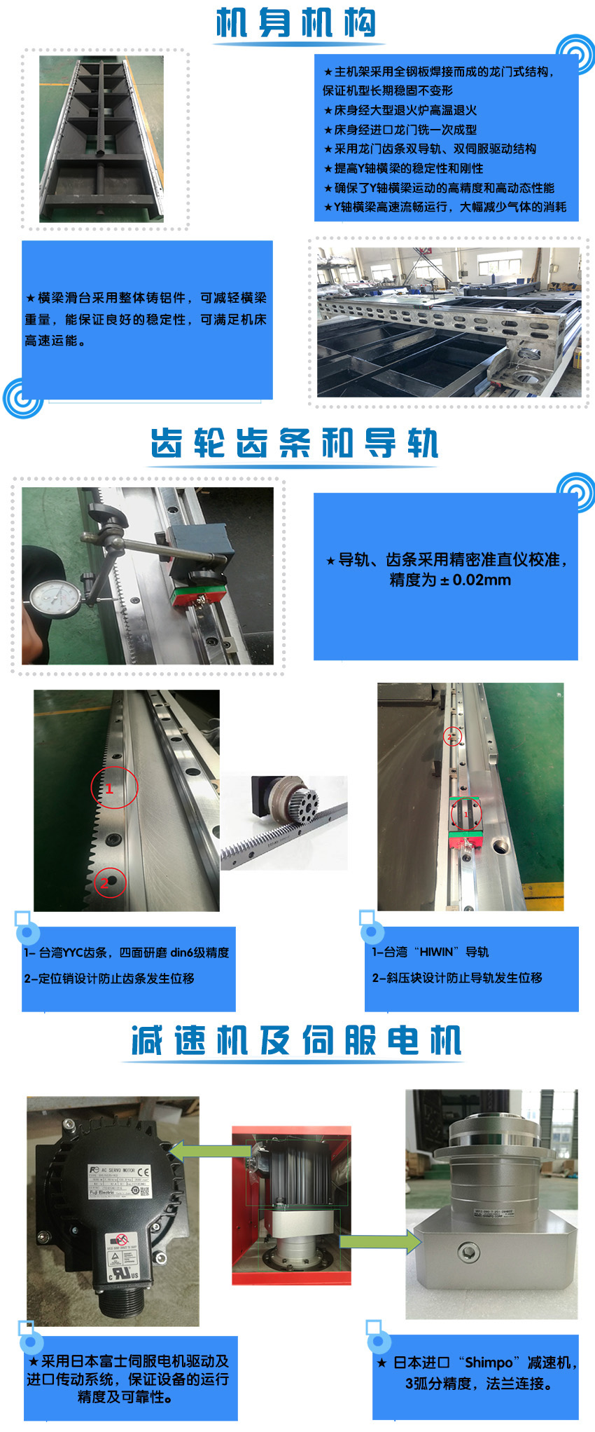4.該機(jī)采用龍門式結(jié)構(gòu),進(jìn)口龍門銑精加工保證20年正常使用不變形。